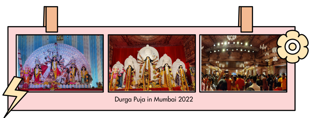 I vividly recall the 2021 Durga Puja, marked by the shadow of COVID. We attended a modest Durga Pujo Pandal in Versova, Mumbai. The first day was all about the bhog (Prasad) served to us packed and an evening filled with a spectacular fire show. I was pleasantly surprised to find that Mumbai had something to offer me for Dussehra.