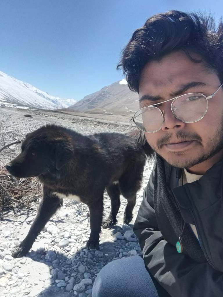 In the next hour, I wasn’t sure who was following whom. The sun was out and was shining at its highest while the two travelers – me and a furry companion, were finding the path across the Spiti River. From above the city, the Spiti River looked crossable, its small wooden bridge was also spottable from the distance, but when we were level-headed with the river, the bridge was far to spot. However my furry companion didn’t seem to be in a similar confusion, he was determined and was not stopping. I moved along with him. He showed me the route across the riverbed and helped me find the bridge. He although didn’t use the bridge, he went down the river, took a beautiful dip in the river cleaned himself, and joined me. He motivated me across a rough stony sunny patch of the river bed, not stopping, giving a few hugs in between when I got tired.